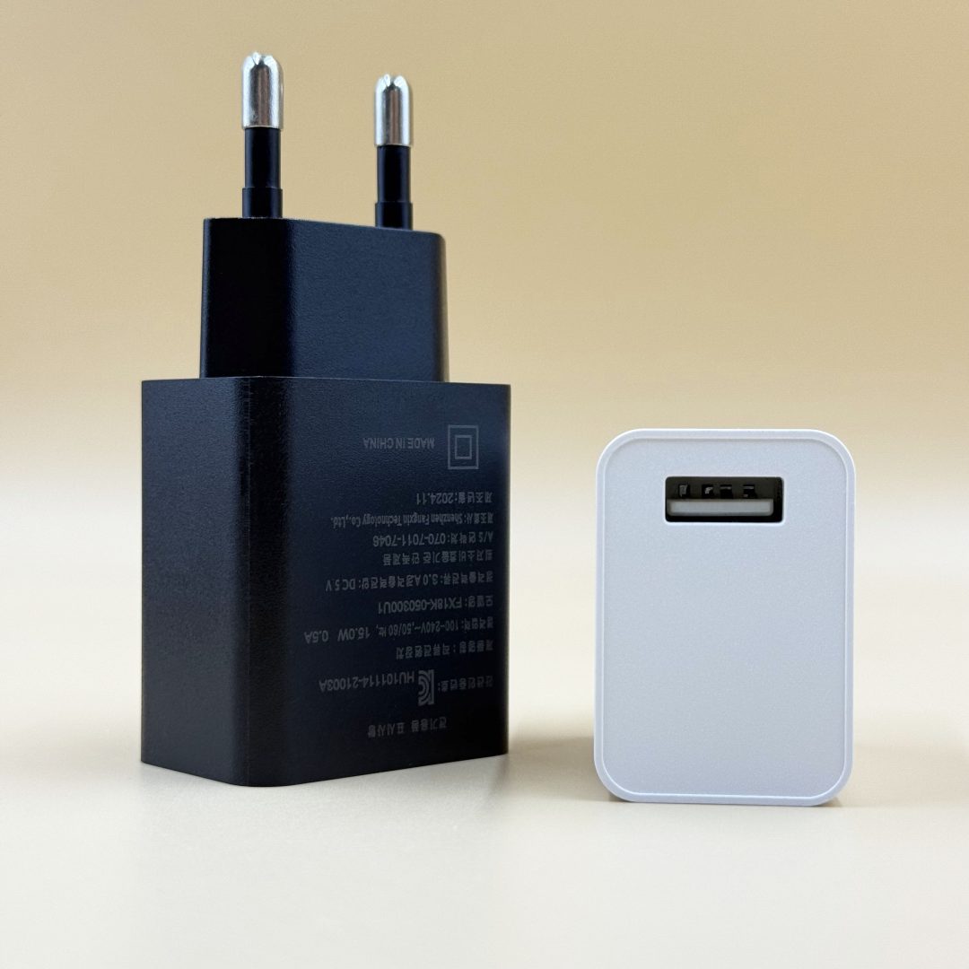 Compact and efficient 15W Phonix USB-C fast charger with single-port output (5V/3A), designed for global voltage (90–265V). Features interchangeable US/EU/UK plugs, eco-friendly fireproof PC + ABS housing, and multiple protections (SCP, OVP, OTP, OLP, OCP). Ideal for smartphones, tablets, smartwatches, cameras, and home electronics.